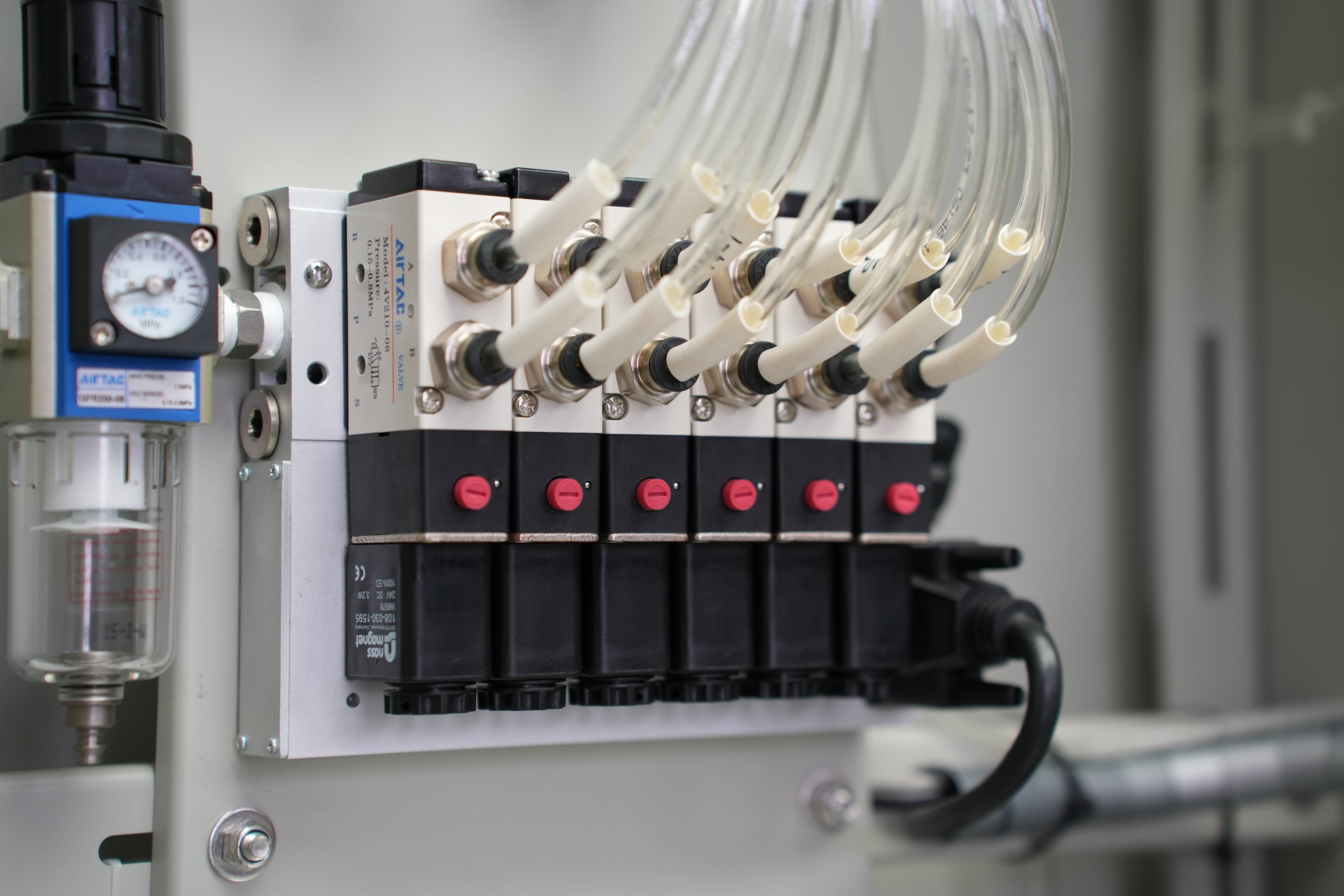 Pressure regulators from AirTAC (Taiwan) ensure stable and accurate outlet pressure, guaranteeing end-user process requirements are consistently met.